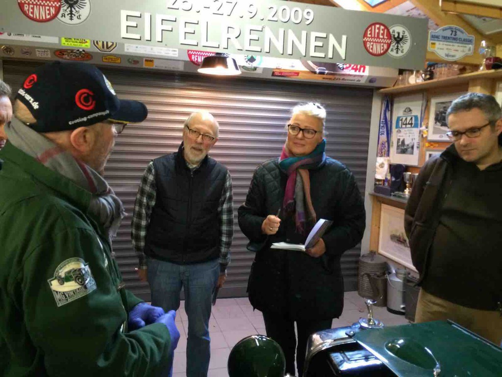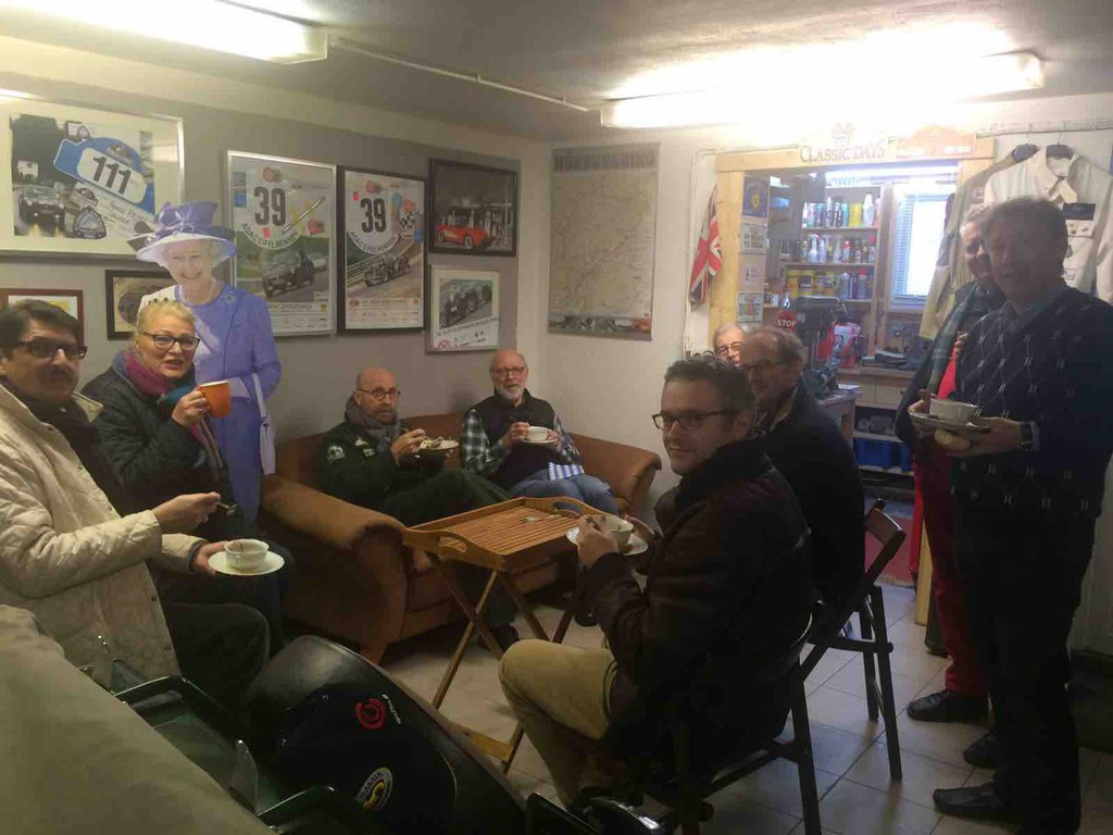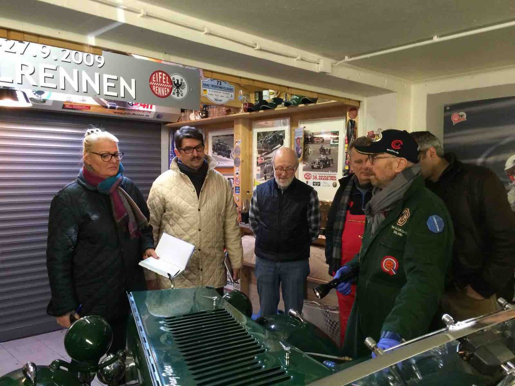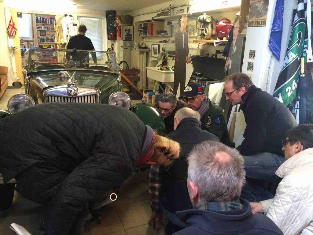 Unser Garagenworkshop Anfang des Jahrs hat schon Tradition. So kam es auch, dass wir schon nach kurzer Zeit wieder ausgebucht waren. Walter Kallenberg, Ritter und KFZ-Meister, war auch in diesem Jahr, zusammen mit dem allerersten Vorsitzenden, der Referent am MG TD der als Anschauungs- und Übungsobjekt diente. Jeder durfte und musste mal ran und zeigen was er oder sie gelernt hatten. Fragen gab es reichlich und es wurde noch mehr mitgeschrieben. Nach einer ausgiebigen und stärkenden Mittagspause eröffnete unser Haus- und Hofschneider, Harald Firmenich, seine Präsentation und Vorführung in der Orangerie von Hösel-Manor. Ein guter Tweed und ein gut sitzender Anzug sind halt unabdingbar. Besonders gefreut haben wir uns über den Besuch von Peter Meyer, dem Vorsitzenden des ADAC Nordrhein, in der ritterlichen Garage. Schade nur, dass der Besuch nur kurz sein konnte. Nach der Schneiderei ging's dann wieder zurück in die Remise und ans Werkzeug. Jetzt hieß es auch mal unters Auto zu sehen und zu fassen. Räder tauschen wurde geübt und was man denn wo und wie und wieviel ein- und nachzufüllen hat. Bremsen erklärte Walter am Modell. Zu guter Letzt dann, und das ist ganz wichtig, wurde erörtert was denn in den Kofferraum gehört? Wir werden dazu auf allgemeinen Wunsch hin, einen Werkzeugsatz auflegen, wo alle diese nützlichen Dinge drin zu finden sind. Abends dann ging es noch in einen benachbarten Landgasthof, wo der Tag seinen Ausklang fand. Der nächste Workshop ist auch schon in Planung.