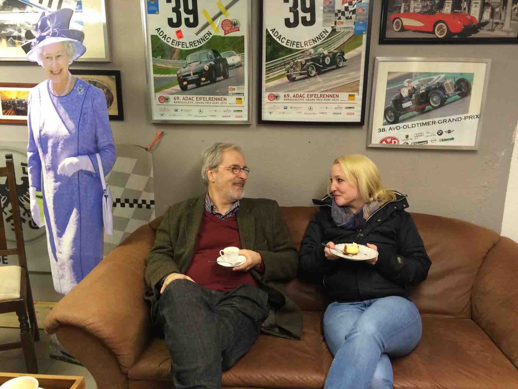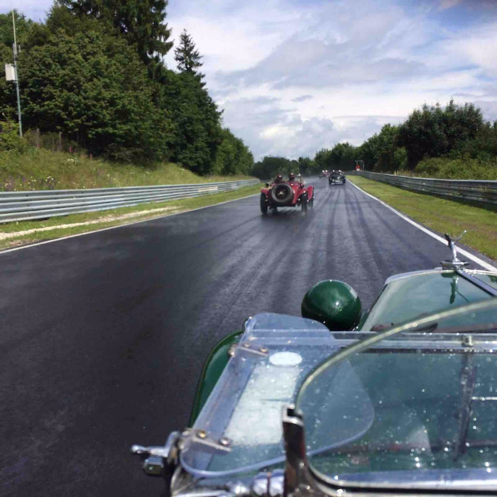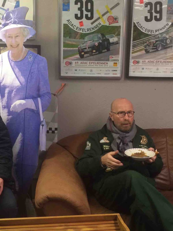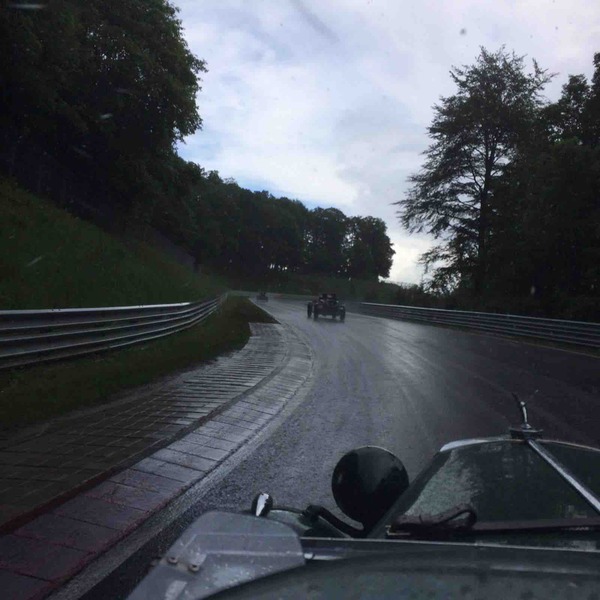 Meine Güte was das nasssssssssssssss ! Der allererste Vorsitzende und der Knappe Lars waren unerschrocken auch dieses Jahr wieder bei den kläglichen Resten der legendären Vintage Nürburgring am Start. Das Umfeld war ärmlich, das nicht vorhandene Ambiente im alten Fahrerlager ein Mischung aus Supermarktparkplatz und gähnender Leere, das neue Fahrerlager meist menschenleer. Unfassbar wie man eine solch rühmliche Veranstaltung derart hinrichten kann, wie ein ADAC als geschichtsträchtiger Initiator des Eifelrennens so etwas zulassen kann. Na ja sei´s drum. Es geht auf die Strecke und es schüttet das Gott erbarm. Das hilft allerdings einem guten Fahrer in einem vorbereiteten Auto. So kommt der TD tatsächlich als einziger zu vollen vier Runden Nordschleife in der gesetzten Zeit. Ansonsten hat es Spaß gemacht und einmal Nürburgring im Jahr muss schon sein. Vielleicht erbarmt sich ja mal einer der Verantwortlichen, oder die sich dafür halten, die Vintage wieder zu dem zu machen was sie mal war. Jürgen Möhle würde sich im Grabe umdrehen. Oder sollten die Ritter das mal in die Hand nehmen??