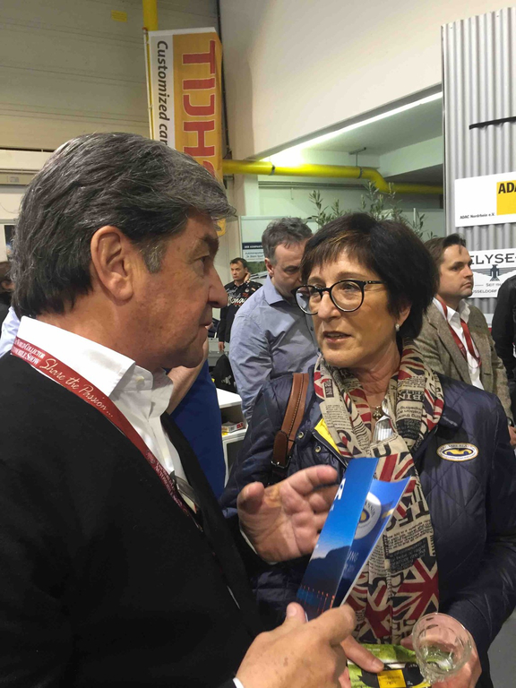 Auch in diesem Jahr waren wir natürlich wieder auf der Techno Classica in Essen und wieder nicht nur als engagierte und fachkundige Besucher. Tina, Tess und Torsten unterstützten in gewohnter Weise den ADAC Nordrhein auf deren Messestand. Zu unserer großen Erheiterung und Freude fand sich unser ritterlicher Garagenworkshop mit unseren Bildern als Schrauber Seminar des ADAC auf dem Messestand wieder. Da soll mal einer sagen wir wären nicht die Besten. Viele Freunde haben wir getroffen, und Siegi plauderte lange und fachkundig mit der Rallyelegende Christian Geisdörfer, sozusagen von Beifahrer zu Beifahrer. Das Angebot hat sich dieses Jahr wieder weiter zu Lasten der Teile und des Marktes an sich hin zu Fahrzeugen verschoben. Die Preise scheinen unaufhaltsam weiter zu steigen, wenngleich man einen deutlichen Trend hin zur Qualität verzeichnen kann. Vom Schnäppchenmarkt ist leider nun gar nichts mehr übrig geblieben, preiswerte Einstiegsklassiker in ordentlichem Zustand sind schlicht keine mehr vorhanden.