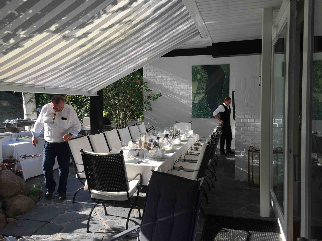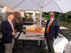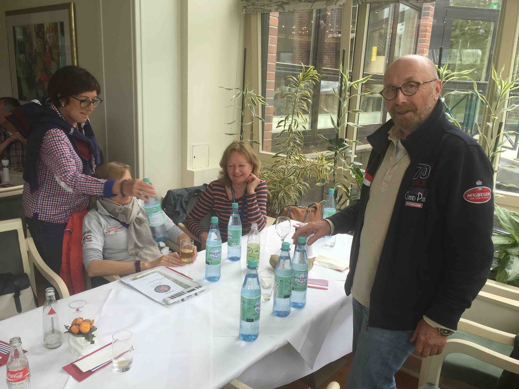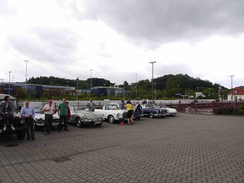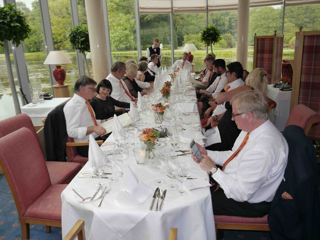 Die erste Etappe führte uns am Samstag durch für die meisten Teilnehmer, die mit Ihren tollen Classic Cars angereist waren, völlig unbekannten Ruhrgebiet bis nach Henrichenburg zur Schleuse Waltrop und dem berühmten Schiffshebewerk. Nach der fachkundigen Führung durch den größten Schleusenpark Deutschlands, gab's im Doppeldeckerbus ein frisches Stauder und wie es sich gehört im Pott, Currywurst und Pommes Rot/weiß. Frisch gestärkt ging's dann aufs Schiff um die ganze beindruckende Anlage auch vom Wasser aus zu sehen. Danach auf verschiedenen Routen zurück ins Schloss. Eine Runde refreshing und dann zu unserem schon traditionellen Galadinner. Hier in Anholt im schwimmenden Wintergarten. Sehr beeindruckend. Den warmen Abend ließen wir in großer Runde auf der für uns reservierten Terrasse ausklingen. Ach ja, einen Ehrengast durften wir begrüßen: Fantomas! Im Laufe des Abends wurden noch, wo doch gerade ein Burg zur Hand war, einige Ritter und Burgfräulein mit dem Ritterschlag geehrt.