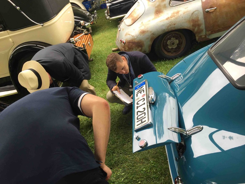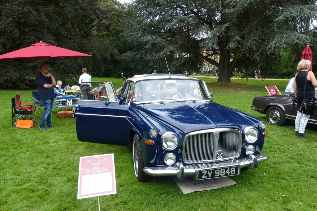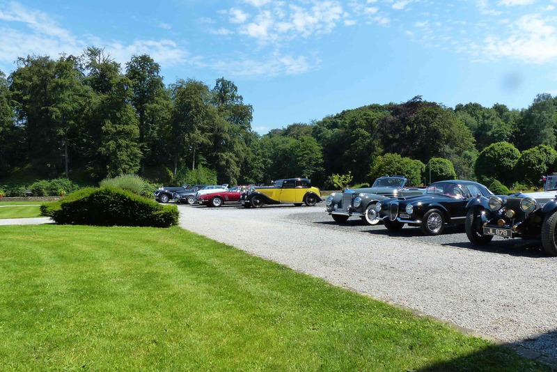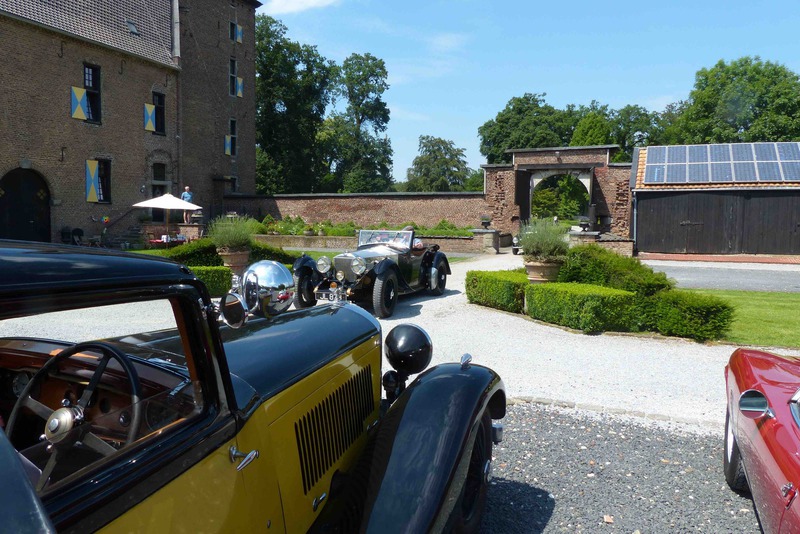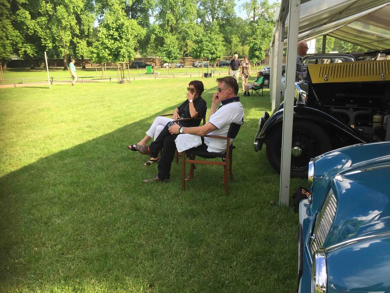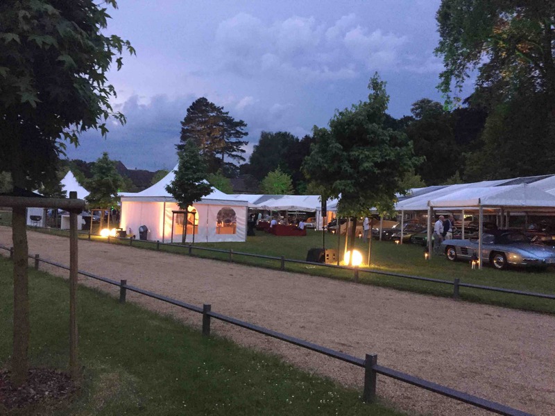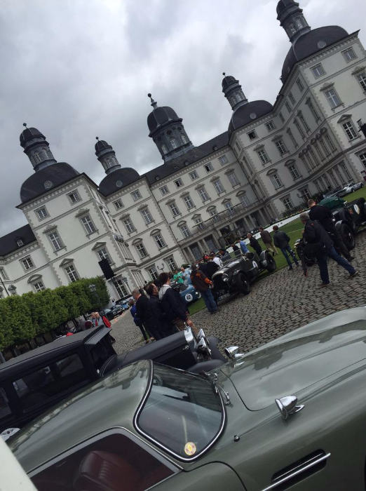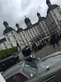 Wo sich einst " very important cars" tummelten und man bei einem Glas Champagner die tolle Kulisse aus Oldtimern und Schloss geniessen konnte, war man in diesem Jahr froh überhaupt Autos sehen zu können. Leider spielte das Wetter auch wirklich nicht mit und so war es nicht selten dass das ein oder andere Schätzchen früher von der Rallye zurück zum Schloss kam. Vermutlich durch einen Rückgang der Sponsoren ( wir spielen hier nicht auf die VW- Krise an) wurde der exclusive Charakter der Veranstaltung doch stark zurück gefahren. Keine Stände zum Stöbern, Eintritt schon am Samstag- obwohl alle Autos unterwegs sind-, Startschilder- Aufkleber statt Schilder- da können wir ja froh sein, dass nicht ganze so viele "Wichtige" mitgefahren sind, auf den Lack klebt man sich nicht freiwillig eine Startnummer.
