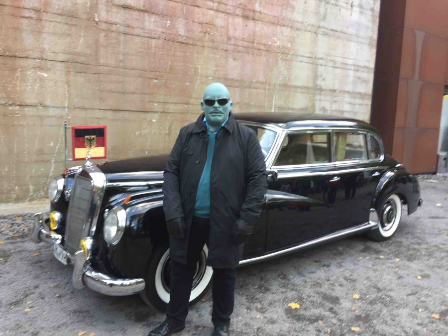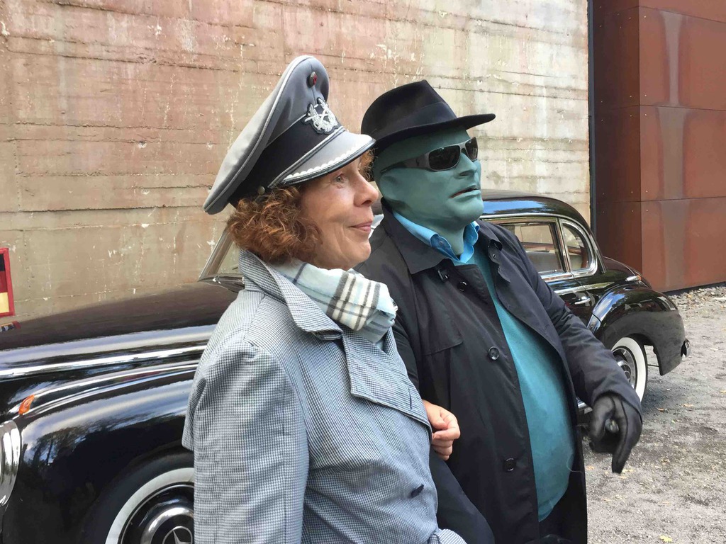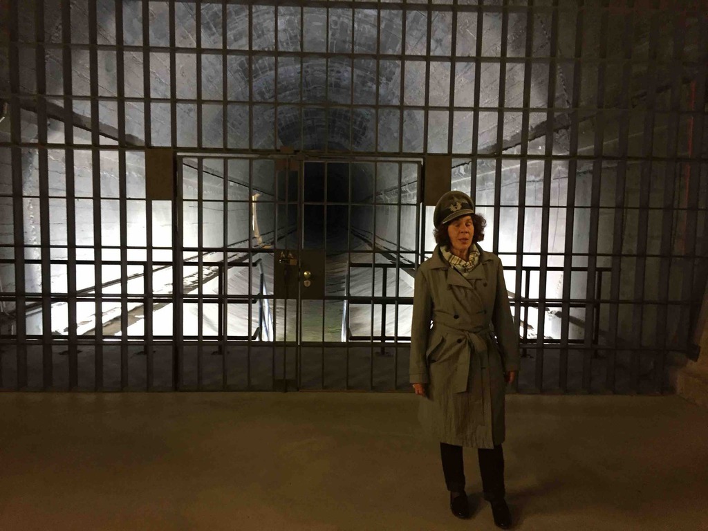Dann ging es korrekt gekleidet weiter zu unserem geheimen Treffpunkt, dem Regierungsbunker im Ahrtal. Adenauers Mercedes, chauffiert von Ritter Georg durfte im abgesperrten Teil parken. Alle Trenchcoat Träger waren versammelt für ihren Einsatz. Natürlich war auch Fantomas dabei und gewährte uns Einblicke in seine geheime Kommandozentrale weit und tief unter der Erde. Ein grandioses Erlebnis. Einsatz erfolgreich abgeschlossen, Welt gerettet, zurück in die Einsatzzentrale Pfahl zum Abendessen.