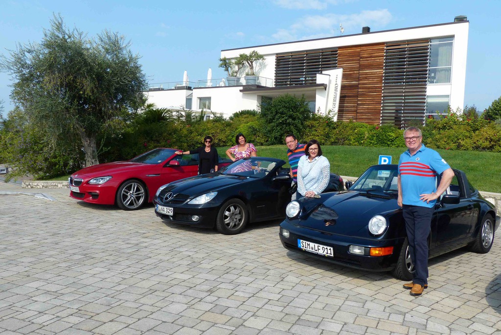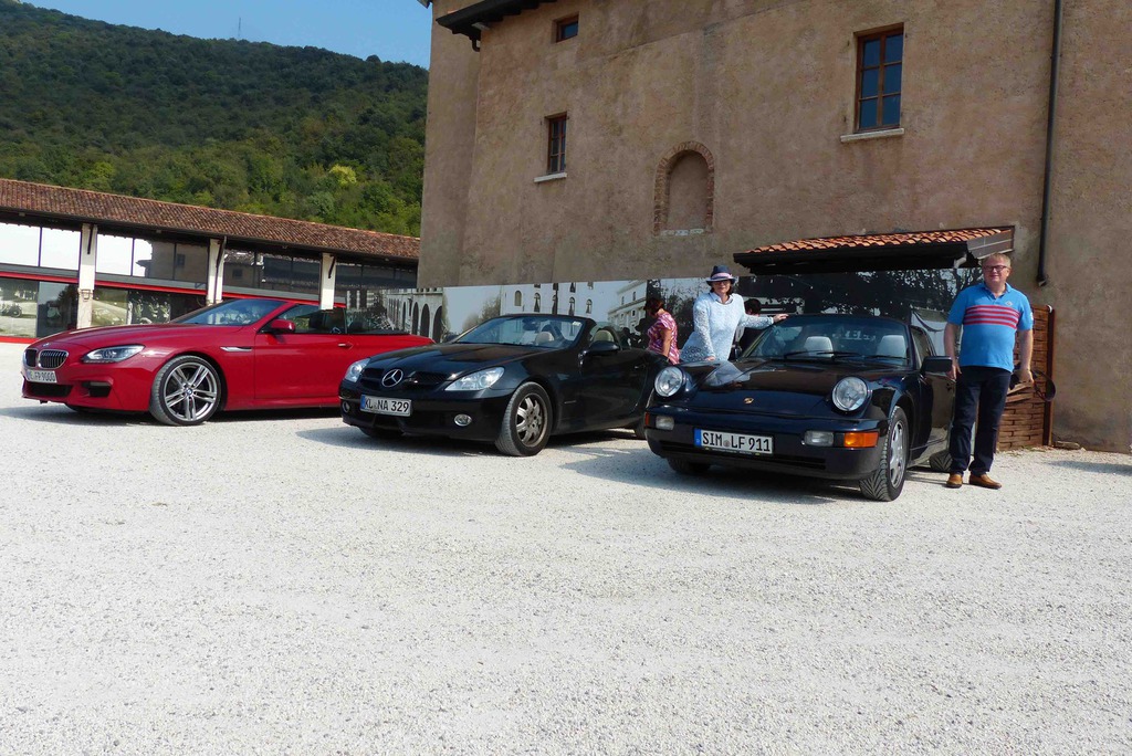 Gardasee geht ja immer! Also trafen sich sechs Ritter im Parkhotel Germano in Bardolino am Lago del Garda zur Ausfahrt, zum guten Essen und Trinken, zum Staunen, zum Genießen, zum Pässe fahren und Landschaft erfahren. Drei Tage durchs Valpolicella und Venetien, dann noch zwei Tage weiter bis nach Südtirol. Landkarten und Restaurantführer immer zur Hand. Ende der Tour war dann im Vigilius in Lana. 14 Pässe sind wir gefahren, meine Güte, und das bei diesem grandiosen Wetter. Natürlich gab's auch ein bisschen Kultur, Mille Miglia Museum, Museo Nicolis und ganz selbstverständlich einen Abstecher zu einem der besten Restaurants am Lago, dem Della Rosa Alda in San Giorgio. Kartenstudium war diesmal zwingend, wir fuhren Strecke nach Karte. Burgfräulein Claudia erwies sich als perfekter Scout. Ein wunderschönes Schloss Hotel für unsere nächste Tour an den Gardasee haben wir auch entdeckt und gleich getestet. Wie gesagt Gardasee geht ja immer!