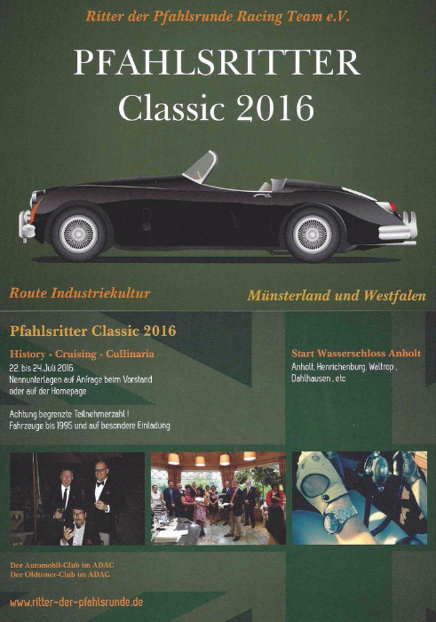 Aber nicht verzagen, in Kürze kommt die Ausschreibung zu unserer schon legendären Pfahlsritter Classic 2016, diesmal auf der Route Industriekultur und gewohnt wird im Schloss Anholt. Vornennungen sind ab sofort möglich.