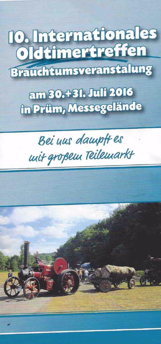 Da ereilte uns mal eine Einladung an einem Oldtimertreffen der ganz anderen Art teilzunehmen und sofort eilte der allererste Vorsitzende dorthin. Traktoren, Landmaschinen, Stationärmotoren und Dampfmaschinen waren schnaufend, qualmend und mit lautem Getöse zu bewundern. Hier gewinnt der Begriff des Schadstoffausstoßes eine ganz neue Bedeutung. Man riecht was man sieht. Tolle Veranstaltung und mehr Besucher am Wochenende als am Nürburgring. Beeindruckend sind die Lokomobile, zumal diese Geräte aus England bis hierher gebracht wurden, by the Way sogar ein Traktor in Clubfarben war zu bewundern.