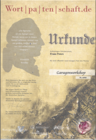 Mittlerweile sind unsere Garagenworkshops legendär. Und dehalb übernehmen wir auch gerne die Wortpatenschaft.