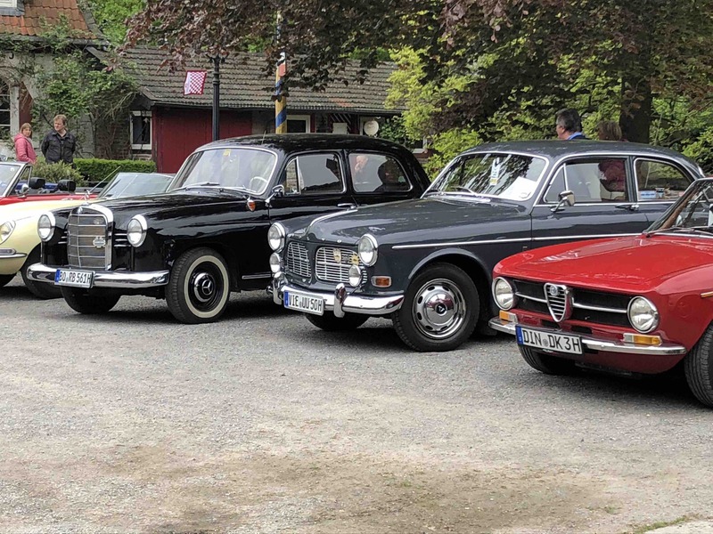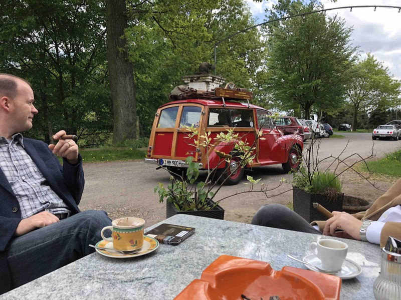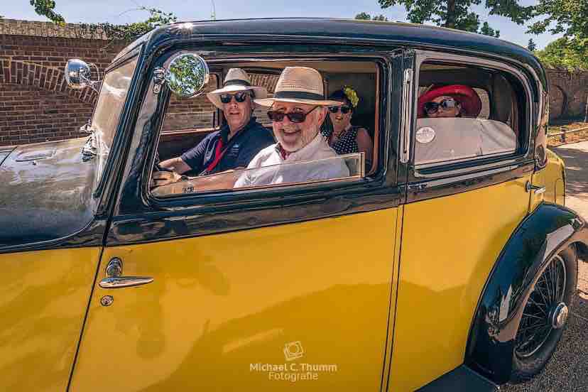 Anschließend galt es dann den Humber und einen MG nach Hamburg auf Achse zu überführen. Auf Landstraßen entspannt bei bestem Wetter los, Übernachtung in Schloss Velen und am nächsten Tag bis Hamburg. Bestens ausgerüstet mit Speis und Trank im idealen Bagagewagen Humber Super Snipe Estate, ein Päuschen auf dem Lande eingelegt, die Landschaft genießen und dann wohl gestärkt bis Hamburg. So macht reisen mal ganz wie früher Spaß und man entdeckt ganz neue Orte und Landstriche dabei.