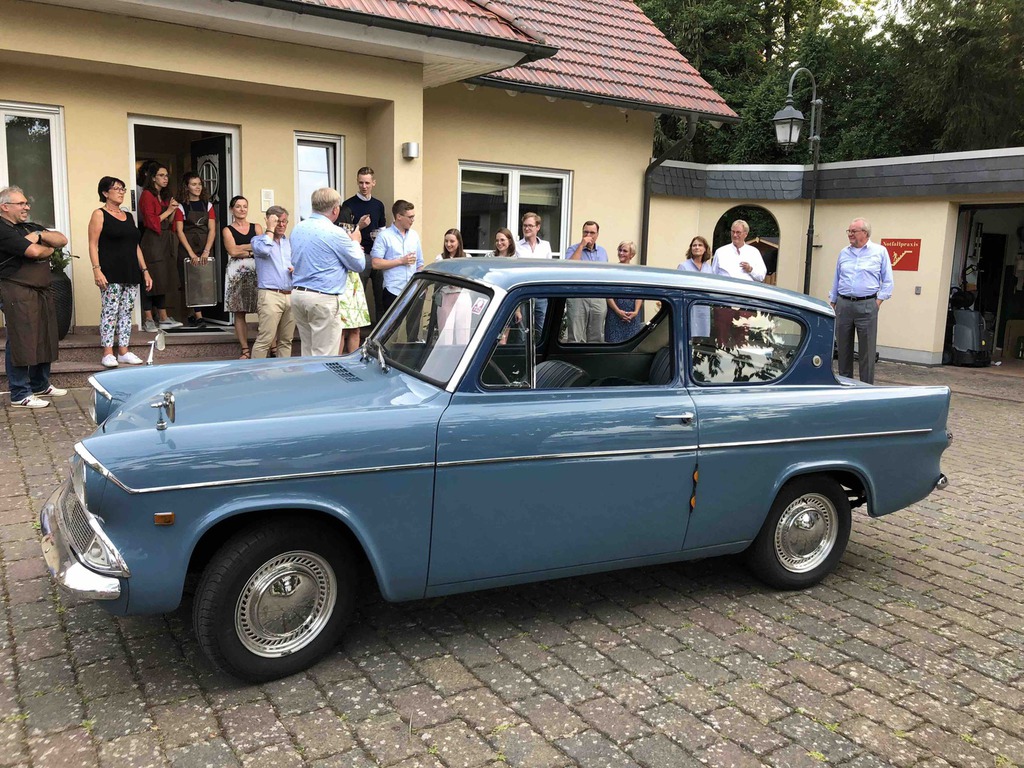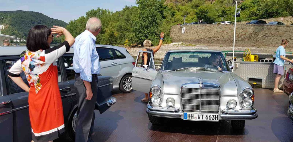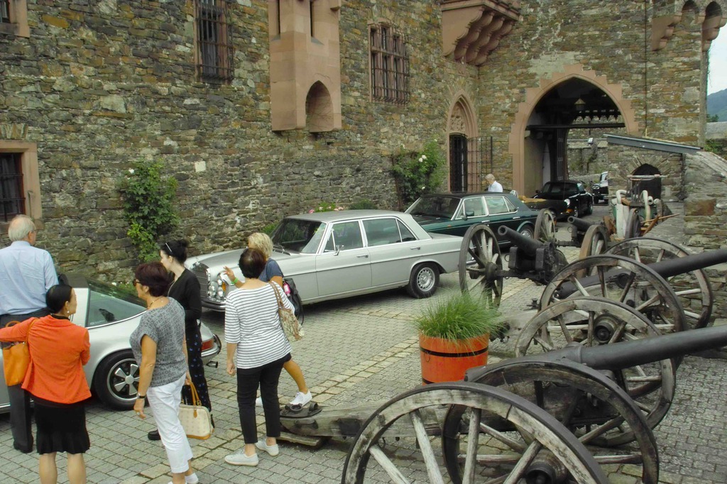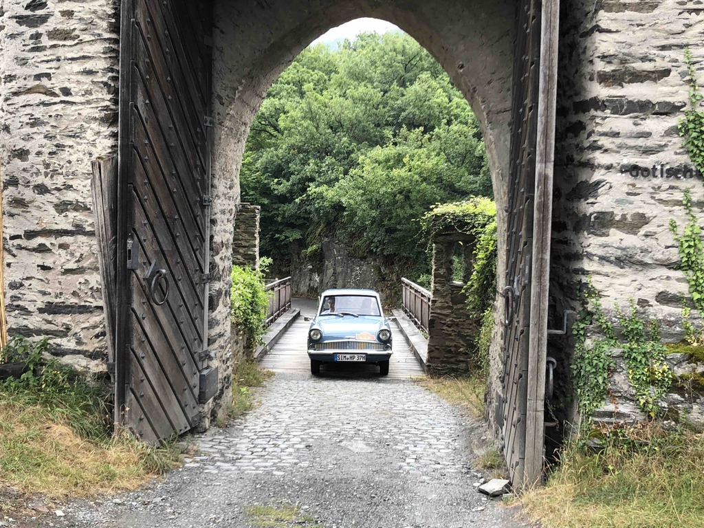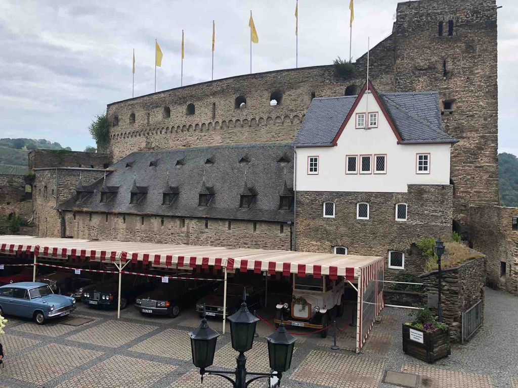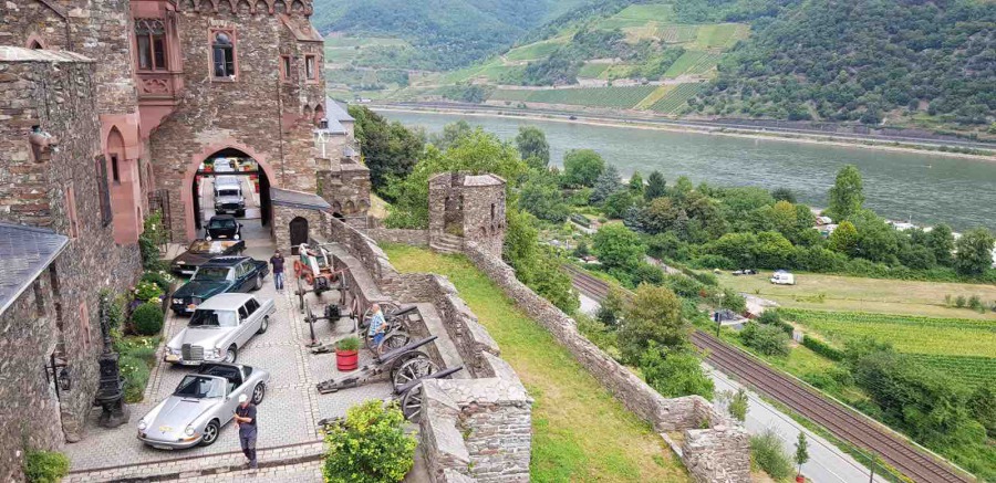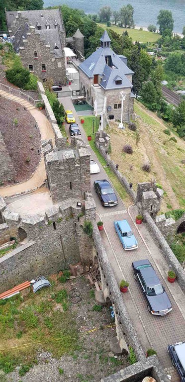Unsere schon legendäre Pfahlsritter Classic im Sommer führte uns als Pfahlsritter on the Castle ins Weltkulturerbe Oberes Mittelrheintal. Die Familie Brenner war Ausrichter und Gastgeber des Warm-Up am Freitagabend. Gewohnt wurde herausragend auf Burg Rheinfels oberhalb von St. Goar. Unsere Autos durften im Schlosshof wohl behütet parken. Das BBQ bei Familie Brenner im Garten stimmt vorzüglich ein auf das was uns erwartete. Die erste Überraschung flog dann gleich von Hogwarts nach Liebshausen, Harry Potter ließ herzlich grüßen und sein Ford Anglia wohnt künftig bei den Squires Louise und Frieda. Enge bemerkenswerte Straßen erwarteten uns in den Weinbergen zwischen all den Burgen, wohl dem der eine Servolenkung oder gut gefrühstückt hatte. Mittagspause wieder auf dem Schloß, direkt über Zugbrücken zum Grill. Perfekt. Da bekanntermaßen bisweilen der Rhein im Wege ist mussten wir das eine oder andere Mal mit der Fähre übersetzen. Für die Zuschauer am Ufer immer eine willkommene Unterbrechung. Das ebenso legendäre Galadinner fand diesmal ganz dem Motto der Burgen und Ritter verpflichtet in rustikalem aber edlem Rahmen statt, Minnesänger inclusive. Tags drauf noch ein Abstecher zur Burg Pfalzgrafenstein mitten im Rhein. Unser Freund und unsere gute Seele Siggi Niessen begleitete uns tapfer und hilfreich. Dieses Mal musste der doch tatsächlich Hand anlegen, shocking! Wir konnten zahlreiche Gastfahrer begrüßen und haben da wohl neue Freunde gewinnen können. Wir danken der Familie Brenner für die phantastische Ausrichtung der Ausfahrt.