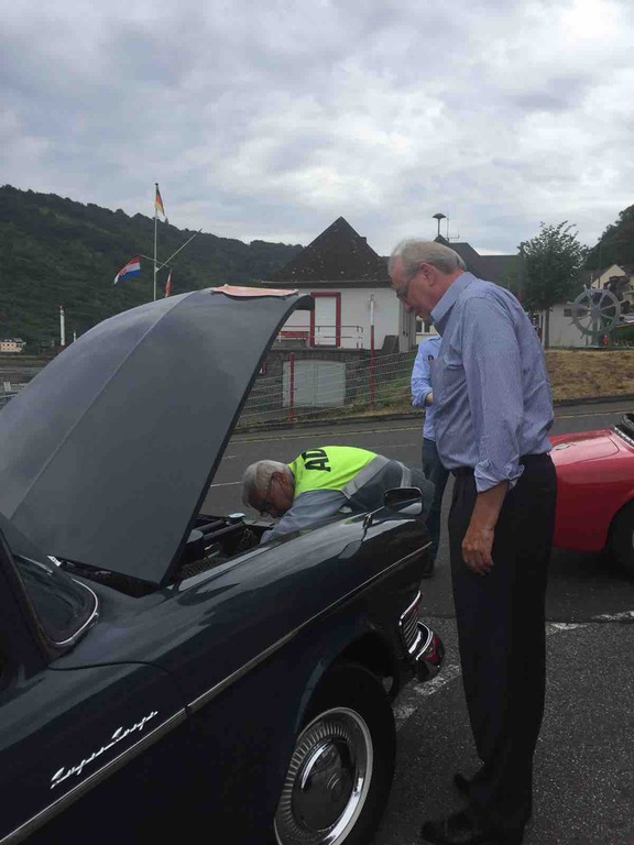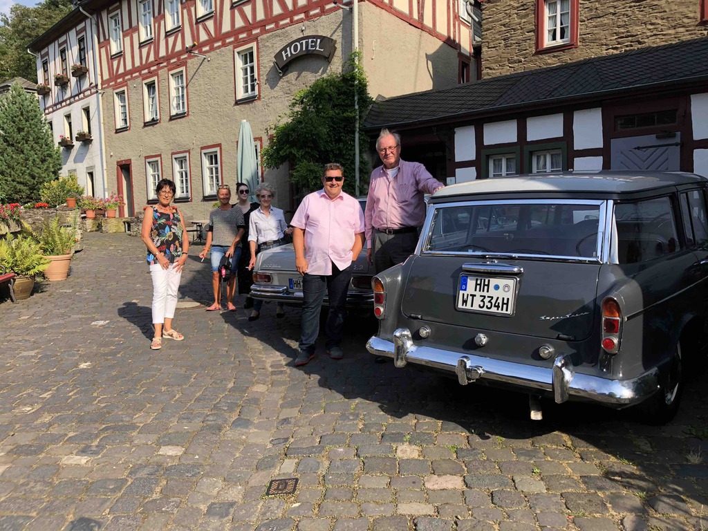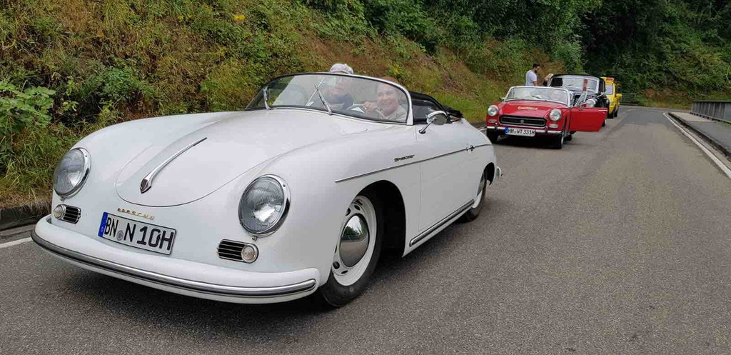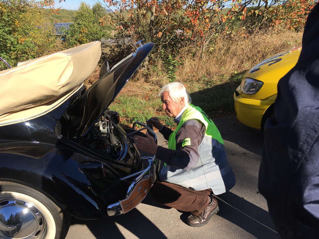 Die Freude an der perfekt ausgearbeiteten Route, wieder bei bestem Wetter, konnte auch gelegentliches Schwächeln der NSU Fox nicht trüben. Unser aller Siggi wurde hier kräftig in Anspruch genommen, auch wegen Vergaser-Asthma am frisch restaurierten Käfer oder gerade noch rechtzeitig entdecktem Ölverlust an Staatskarossen. Aber was wären die Ausfahrten ohne solche belebenden Momente und Ausrichter, die auch bei solchen Fährnissen keine Lösung hätten, und mit einer Flasche roten Pfälzers nebst Decke und Gläsern das Warten kurzweilig gestalteten.
