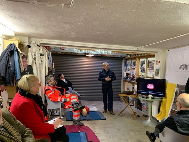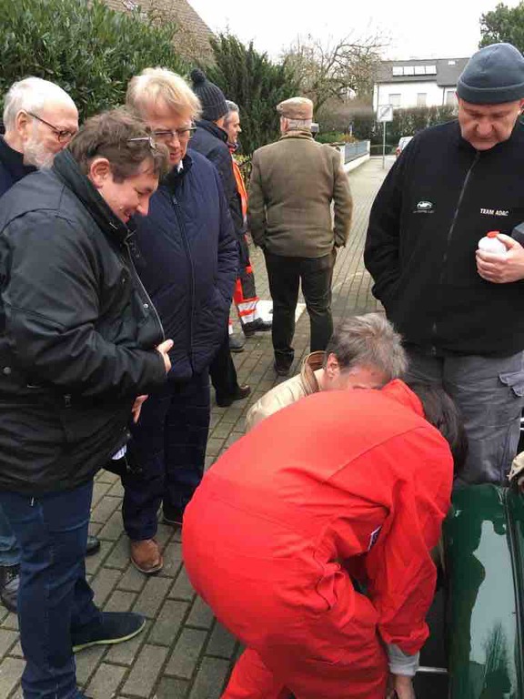 Auch dieses Jahr fand unser - schon legendärer - Garagenworkshop wieder in den Hallen von Hösel Manor statt. Wir waren binnen weniger Tage komplett überbucht. Dieses Jahr jedoch, haben wir uns mal den Fahrern und Beifahrern zugewandt. Unser Ritter Dr. Georg referierte mehr als interessant über erste Hilfe und kleine Reparaturen an leidenden Personen zur Wiederherstellung der Betriebsfähigkeit und der Vermeidung von kapitalen Motorschäden an Rittern und Burgfräulein. Unter fachkundiger Hilfe von Uli und Georg musste und durfte jeder mal ran, nicht nur an den mitgebrachten Puppen sondern auch am lebenden Objekt wurde geübt. Es war schon bemerkenswert und auch ein bisschen ernüchternd, wie groß doch die Defizite bei uns waren. Wir werden das zu rechten Zeit wiederholen. Nach der deftigen Suppe zu Mittag gings dann technisch weiter, Fragen wurden besprochen und beantwortet. Den Abschluss dieses sehr erfolgreichen Tages bildete wie immer unser gemeinsames Schnitzelessen bei Knappmann in Essen.