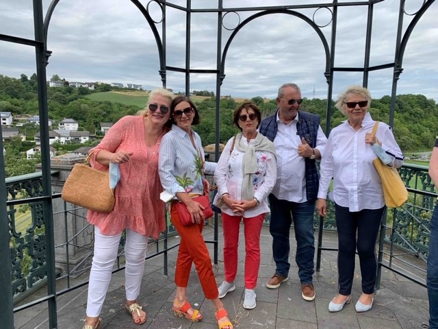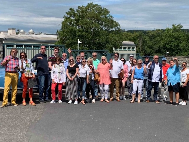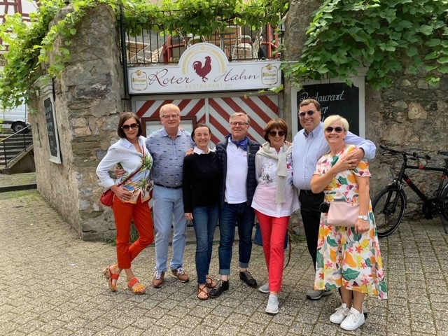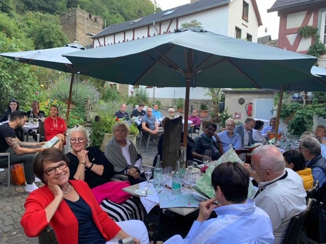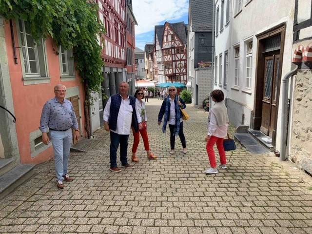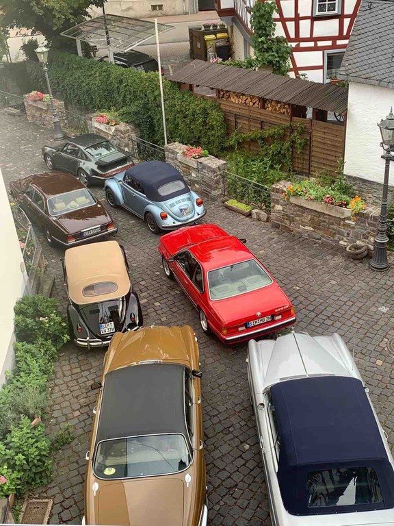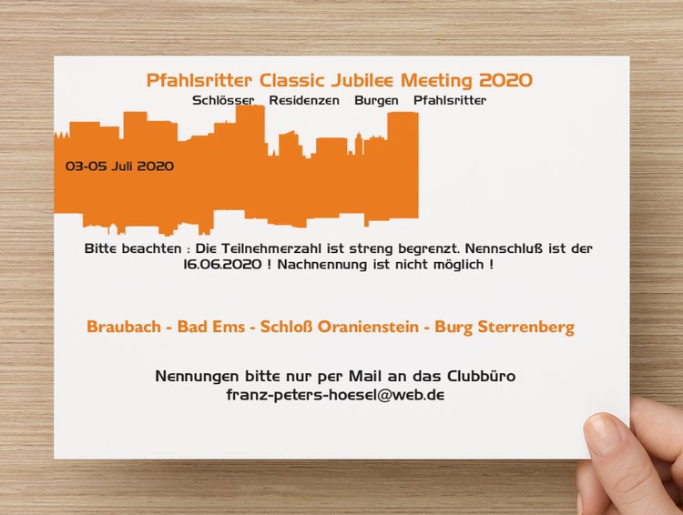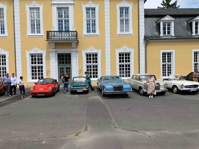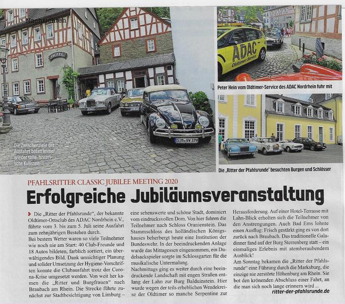 10 Jahre Pfahlsritter, das ist ja mal ein Anlass! Bei bestem Wetter waren wir so viele Teilnehmer wie noch nie am Start, 40 Freunde und 18 Autos farblich sortiert, einfach überwältigend. Da soll mal einer sagen bei Corona ging ja nix! Von weit her kamen die Ritter und Lieblichkeiten nach Braubach am Rhein. Die Route, garniert mit dem aufmunternden Grußwort unsers Freundes Peter Meyer, ADAC Nordrhein, führte uns über ausgewählte Straßen zunächst zur Stadtbesichtigung nach Limburg. Sicher und gut begleitet wurden wir vom ADAC- Oldtimerservice Peter Hein. Eine sehenswerte und schöne Stadt ist Limburg, dominiert vom eindrucksvollen Dom. Leider was uns ein Blick auf die wohl bekannteste Badewanne Deutschlands verwehrt. Die Sonne scheint und wir fahren weiter nach Schloss Oranienstein. Das Stammschloss des holländischen Königshauses gehört heute der Bundeswehr. Eine sehr beeindruckende Anlage, in der wir zum Lunch zu Gast sein durften. Ein besonders Erlebnis, dass man eben nicht kaufen kann. Peter-Paul spielte eindrucksvoll die Ode an die Freude im Garten des Schlosses und geleitete uns in den großen Saal. Aufbruch nach Bad Ems in das mondäne Grand Hotel zu Kaffee und Kuchen. Die Straßen werden enger die Landschaft immer schöner. Es geht entlang der Lahn über Balduninstein. Wendekreise bekommen hier eine ganz neue Bedeutung, die eine oder andere Serpentine wird zur ausladenden Herausforderung. Auf der Terrasse des Grand Hotel Bad Ems mit Blick auf die Lahn saßen schon Könige und Zaren...und Ritter. Auch Bad Ems lohnt immer einen Ausflug. Frisch gestärkt aufgesessen und zurück nach Braubach. Dort erwartet uns der Shuttle zu unserem schon traditionellen Galadinner. Diesmal auf Burg Sterrenberg. Ein ganz einmaliges Erlebnis mit atemberaubenden Ausblick. Den Sekt reicht uns der Burgherr