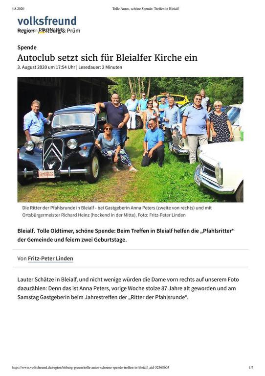 Donnerwetter, wer hätte das gedacht, dass wir so eine Aufmerksam genießen! Unsere Jubiläumsveranstaltung findet sich mit einem ausführlichen Bericht und zahlreichen Bildern in der August-Ausgabe 2020 der Auto Zeitung Classic Cars wieder. Ja stimmt, wir hatten bei unserer Ausfahrt in die Eifel Besuch des Trierischen Volksfreundes. Am 04.08.2020 nun sind wir mit einem wiederum großen Bericht mit Foto in der Zeitung. Hoffentlich liest auch das Finanzamt den Bericht. Jetzt höre ich auch gerade wir sind mit den Veranstaltungen auch bei Facebook und Instagram präsent. Jedenfalls freut uns die wirklich positive Resonanz auch in der Fachpresse und ermuntert zu weiteren Touren und Veranstaltungen. Danke liebe Reporter, wir nehmen Euch gerne wieder mit auf Tour.