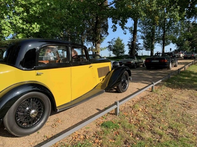 Ein schöner sonniger Spätsommertag auf Schloss Dyck. Zahlreiche Freunde und Mitglieder der Drivers Association trafen sich zur Herbstausfahrt. Also diesmal den Sohn auf den Beifahrersitz und das Roadbook in die Hand gegeben. Auf schöner Strecke ging ums Braunkohlenrevier in die Eifel bis zum Golfplatz Schloss Zievers. Eine schöne Location. Wir durften fast auf den Green parken und auf der Terrasse den Lunch genießen. Am Ende des Tages waren es doch glatt fast 300km all in.