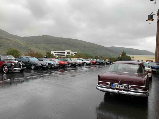 aber nix, die Stimmung war bestens und eine illustre Fahrergemeinde traf sich vor dem Museum. Nach kurzem Fahrerbriefing ging es auf die Strecke entlang der Mosel in den Hunsrück. Eine wunderbare