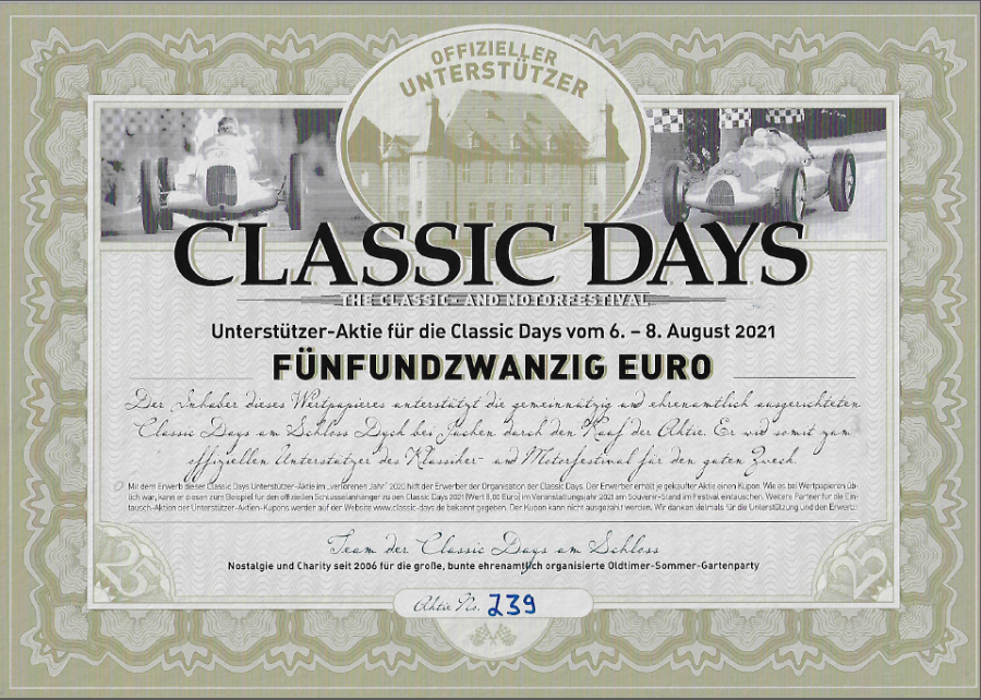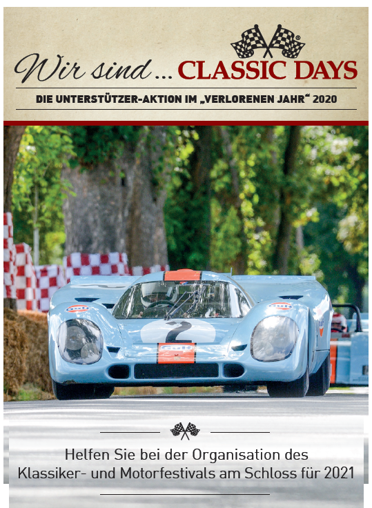 Ja natürlich hat Corona auch die Planungen für unseren Club gründlich durcheinander gewirbelt. Gott sei Dank aber hat es kein Clubmitglied erwischt. Gerade einer unserer Lieblingsveranstaltungen, die Classic Days auf Schloß Dyck können dieses Jahr nicht stattfinden. Gerne aber wollen wir die Veranstalter aktiv unterstützen damit uns diese Days auch in 2021 erhalten bleiben. Bitte seht mal auf unseren Newsletter dazu und die Homepage der Classic Days. Der Club hat schon Aktien erworben und wir bitten Euch dem gleich zu tun. Vielen Dank dafür. Vielleicht regt ja gerade unser kleines Engagement zum Fortbestand dieser wunderbaren Veranstaltung.